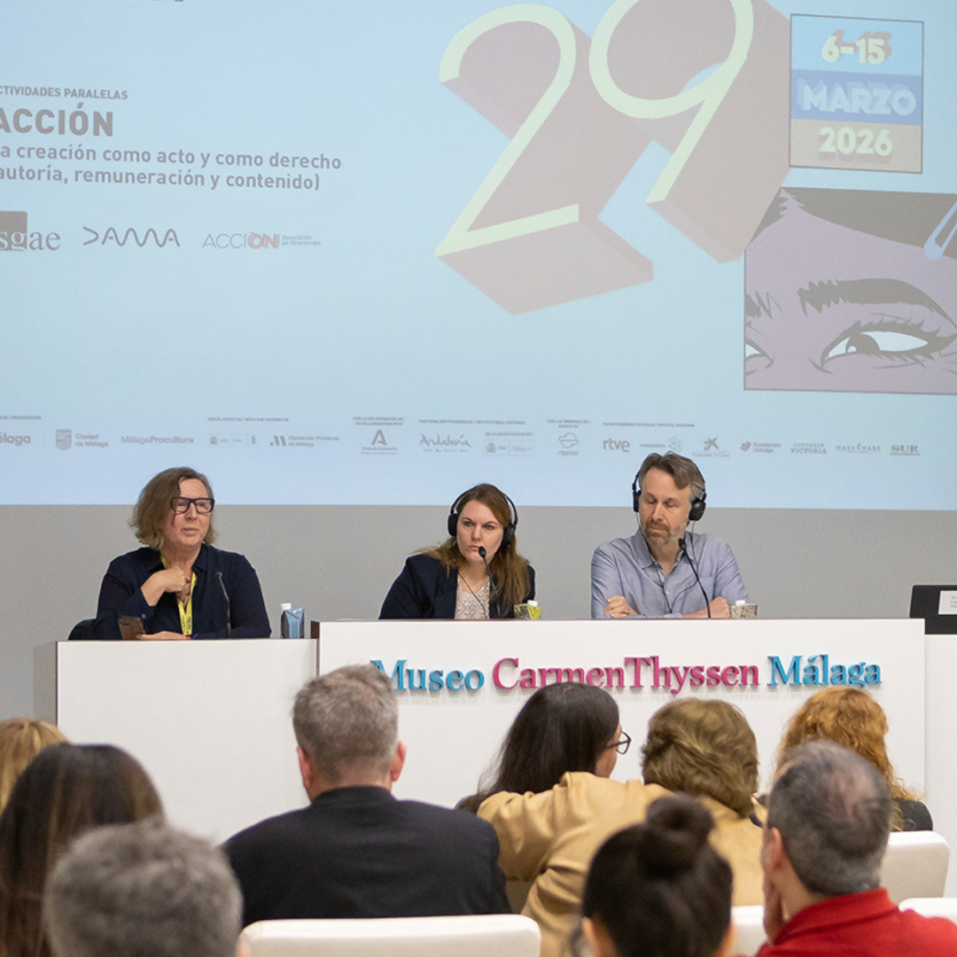 On March 8, the 29th Málaga Film Festival featured the roundtable discussion ‘Creation as an Act and a Right’, organised by Spanish member ACCIÓN at the Thyssen Museum in Málaga.